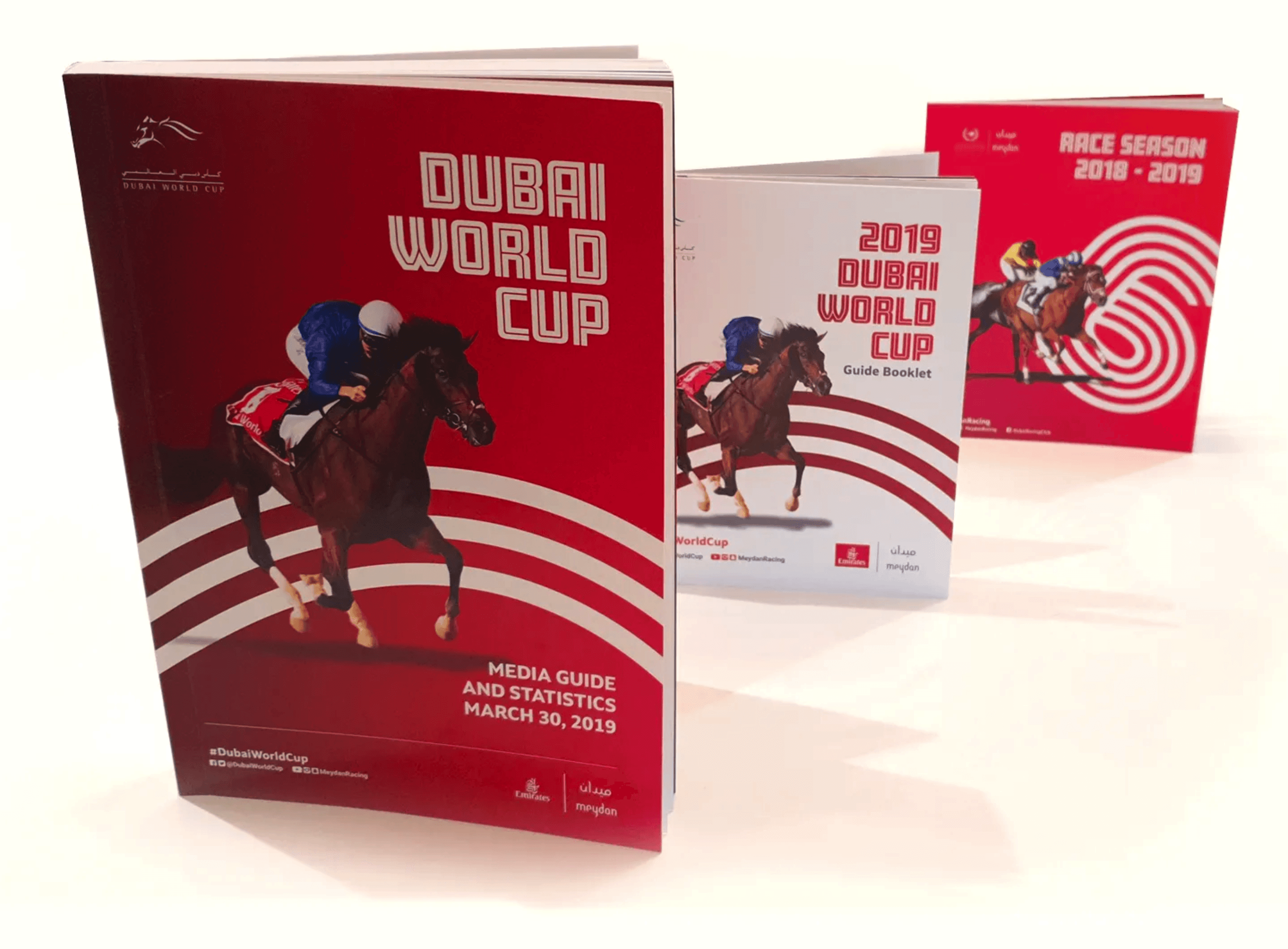 Following in depth research we were able to direct the design strategy towards a compelling graphic style. Using three colourways for the Dubai race season, Dubai World Cup Carnival and the Dubai World Cup. Each using consistent elements throughout the season.